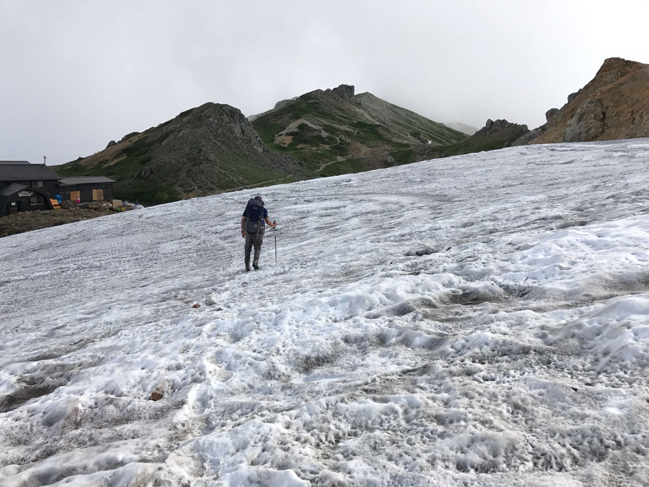 宿泊者も少なく商売にならないのだろうか、この山小屋は売店とキャンプ場の管理だけで、宿泊施設は営業されていない。唐松岳から不帰ノ嶮・天狗ノ頭、そして天狗山荘まで長丁場の険路が続き、宿泊するには鑓温泉に下るか、白馬三山を越えて頂上宿舎か白馬山荘まで足を延ばすか方法がないので、ずいぶん不自由思いをさせられる人もいるだろう。