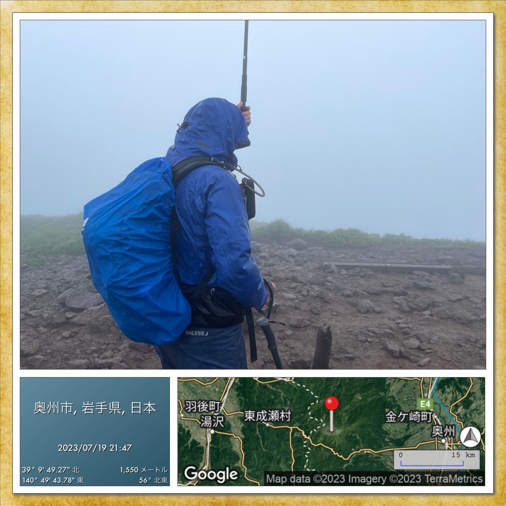 雨と爆風の焼石山山頂
