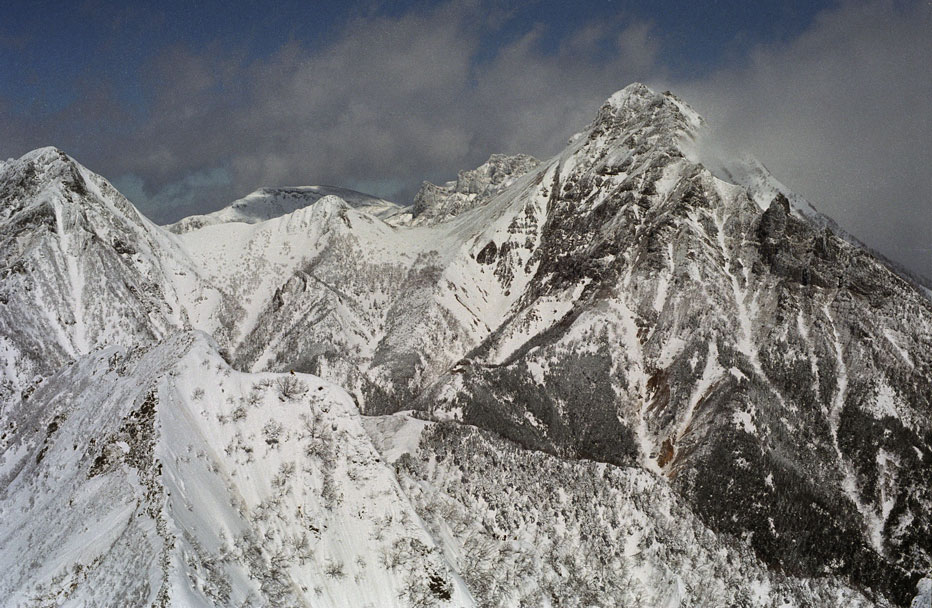 2001年3月11日、権現岳2704mより八ヶ岳南部の山々を望む