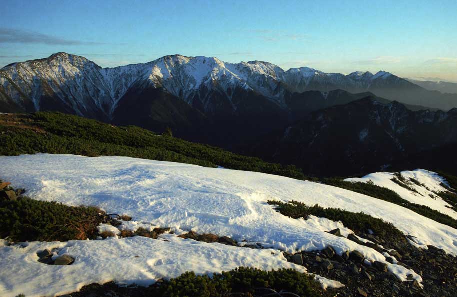 1999年10月24日、南アルプス・小河内岳にて「荒川三山」を写す。 機材:CONTAX S2