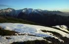 小河内から振り返ると、荒川岳には夕暮れの靄がかかっていた。この直後、山々は真っ赤に染まったのだが、写すタイミングを失してしまった。